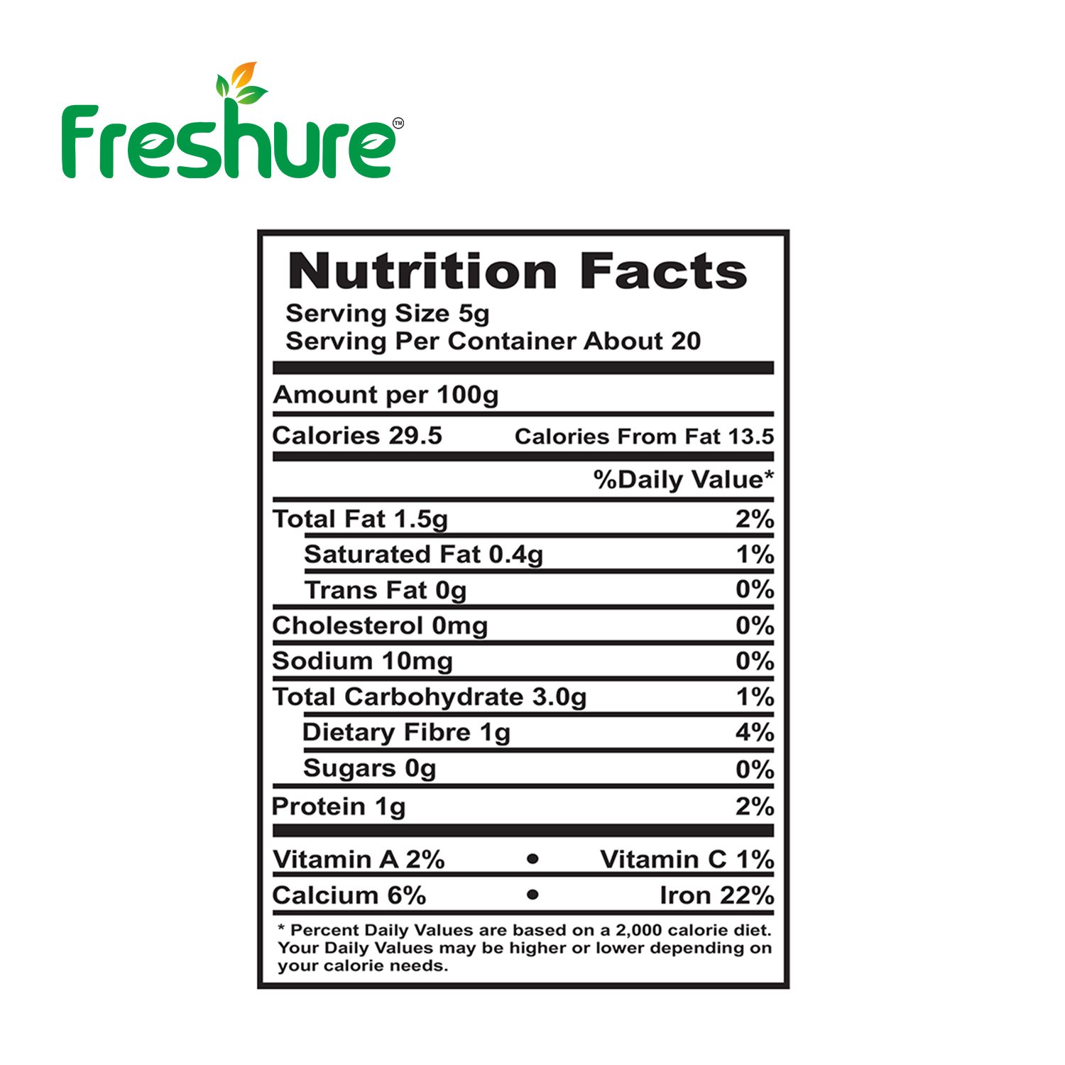 Freshure Black Pepper Powder is hygienically packed in airtight, tamper safe packaging to preserve freshness, potency, and aroma for longer shelf life. Free from added colours, preservatives, and fillers, it ensures purity and consistent quality in every spoon.