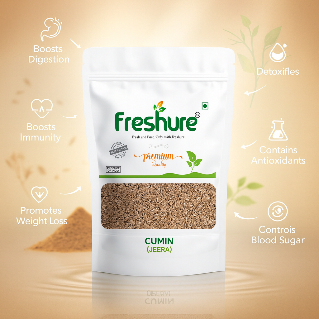 Freshure Fennel Seeds, popularly known as Saunf or Variyali, are carefully sourced from quality farms and naturally processed to retain