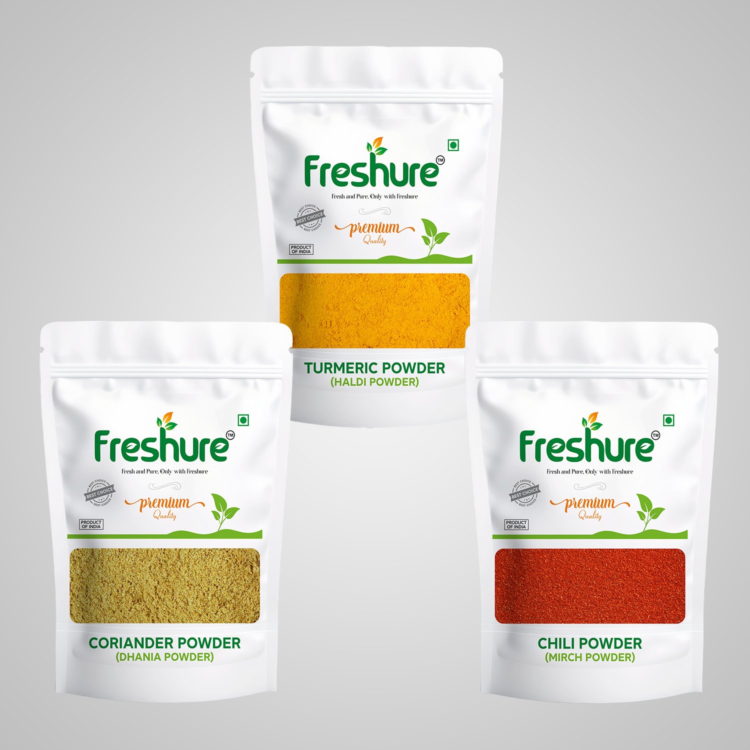 Essential Masala Combo | Haldi, Red Chilli & Dhaniya Powder | Freshure