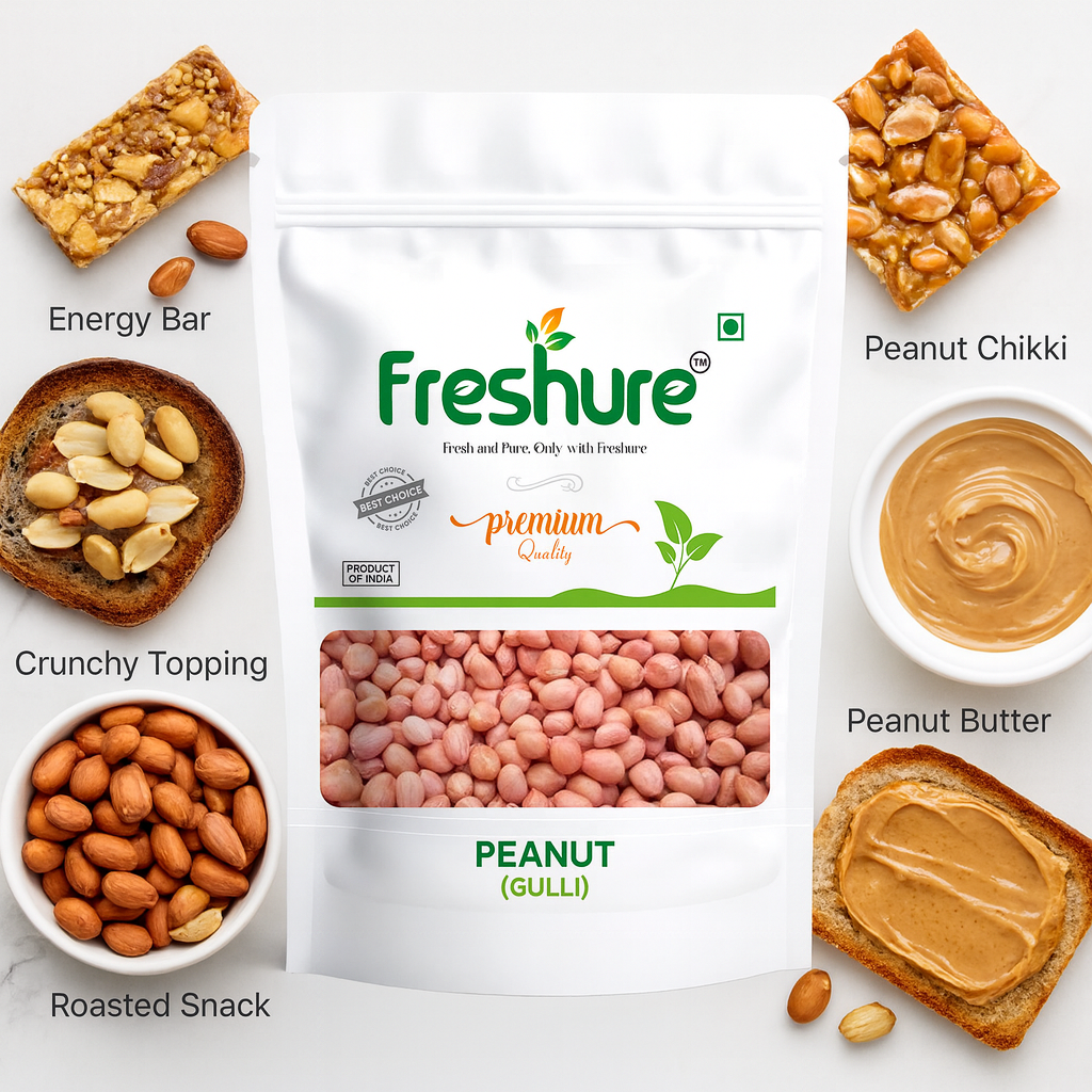 Peanuts are widely used in Indian cooking, snacks, and traditional recipes. Freshure Peanuts can be consumed roasted, boiled, or used in gravies, chutneys, and sweets. Their natural nutty taste and versatility make them a staple in many kitchens.