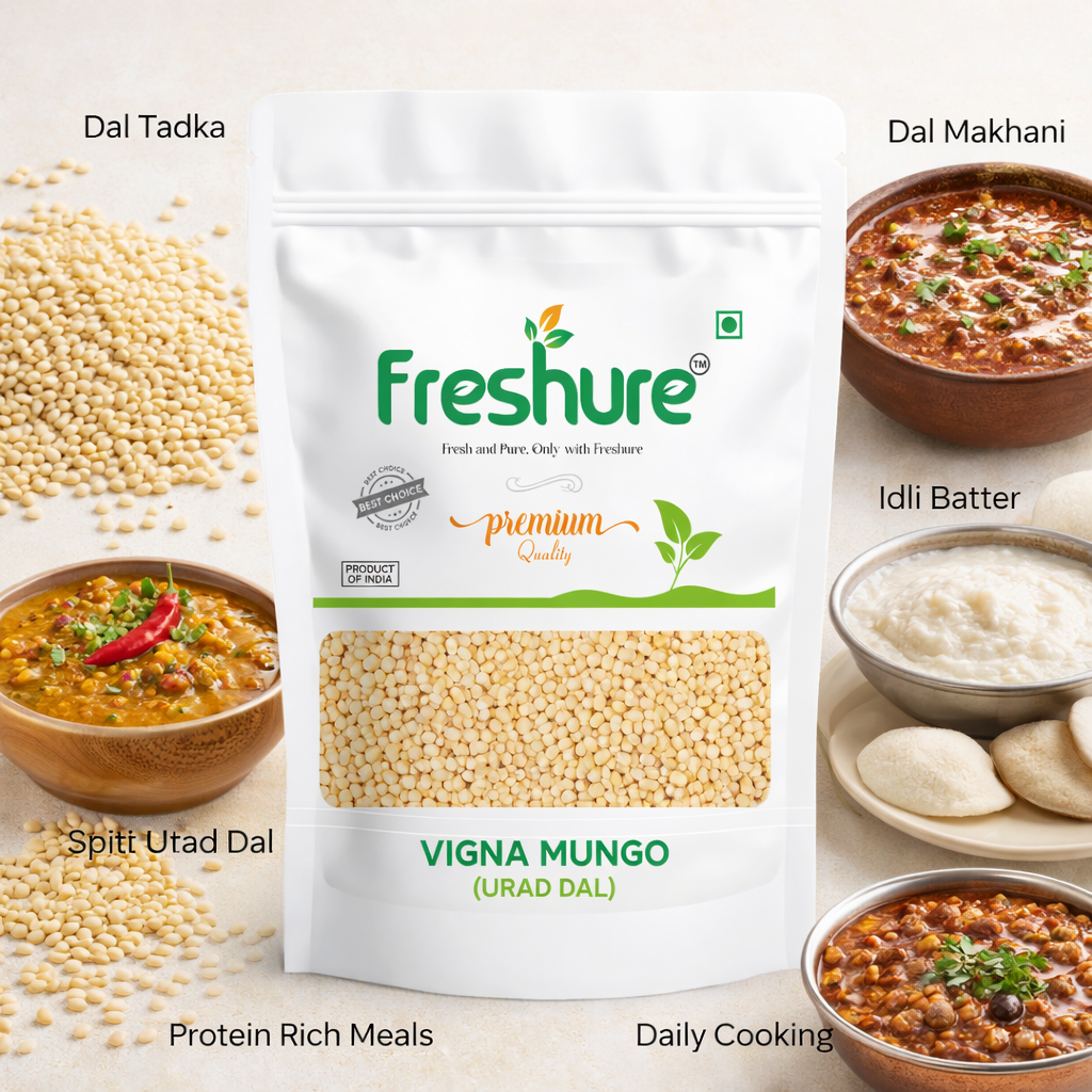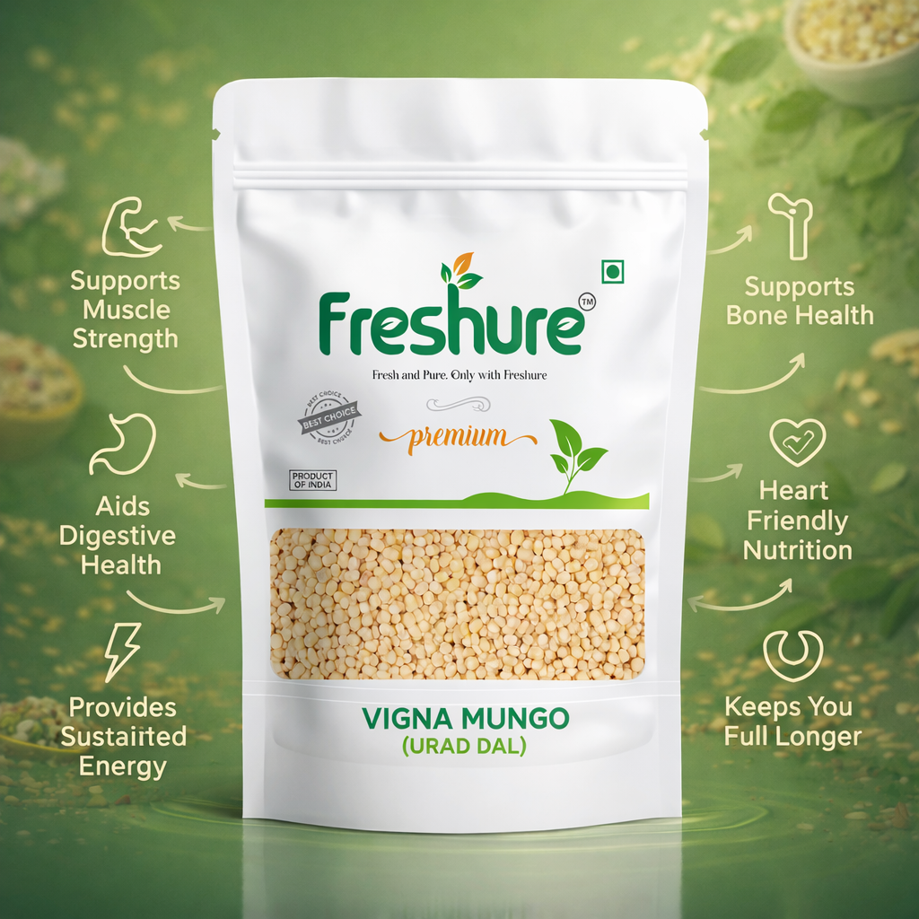 Each batch is hygienically packed to maintain freshness and purity, making Freshure Urad Dal Whole a reliable choice for everyday cooking and balanced nutrition.